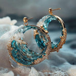 Ezek a fülbevalók, gondos és szenvedélyes kézműves munkával készültek, megragadják a mozgó hullámok varázsát. A kék gyantából készült víz tisztasága, ötvözve a ragyogó arany és kristály hullámokkal, egy történetet mesél el az erőről és a kifinomultságról – ideális bármilyen különleges alkalomra.