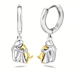 Ezek az elegáns fülbevalók egy soha el nem halványuló szeretetet örökítenek meg. A dizájn egy nőt és kutyáját ábrázolja egy meleg és gyengéd ölelésben — a gondoskodás, bizalom és társaság szimbóluma. Könnyűek a füleknek és finom színük van, így szépséget és jelentőséget adnak a napod minden pillanatához.